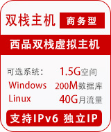 > 操作系统:Windows/Linux >双栈虚拟主机(IPv4+IPv6)双独立IP > 网站空间:1.5GB独立网页空间 > 支持ASP,ASP.NET,PHP,ACCESS动态程序开发 > 送200MB MYSQL5/MSSQL,子目录2个 > 不限制连接数,40GB/月流量,绑定15个域名 > 控制面板 备案提交 备案提示